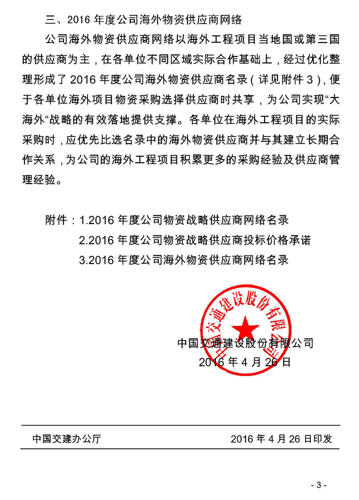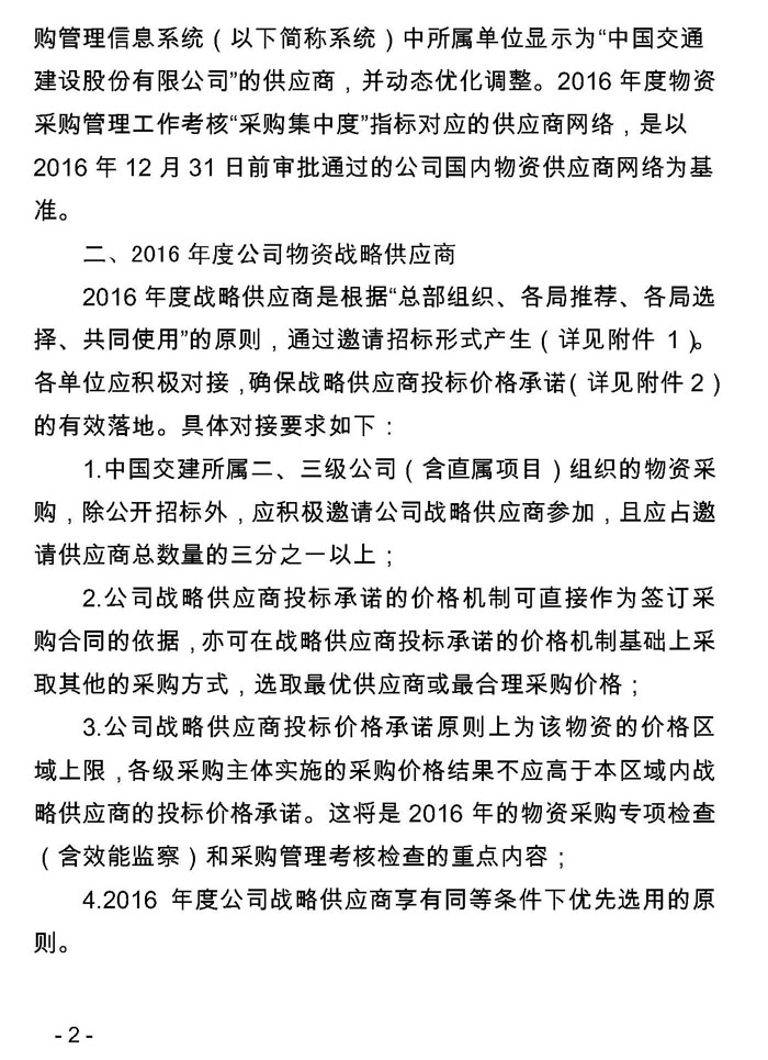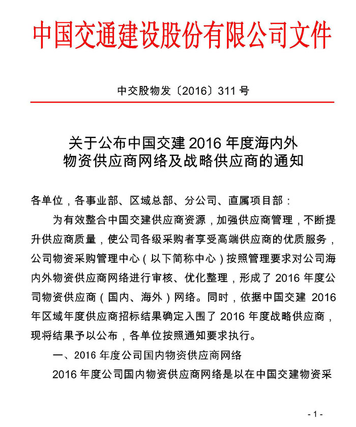 中国交建2016年外加剂年度供应商入围名单