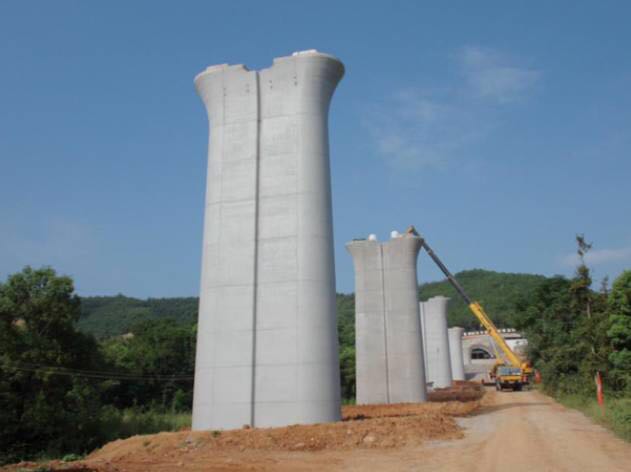 柱子模拟试验(小图)/ 墩柱施工效果图(大图)