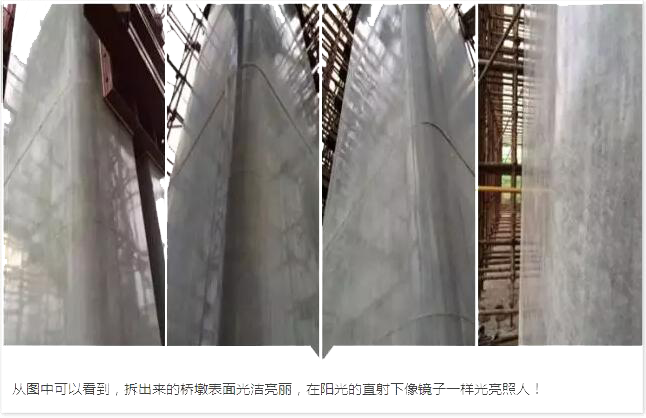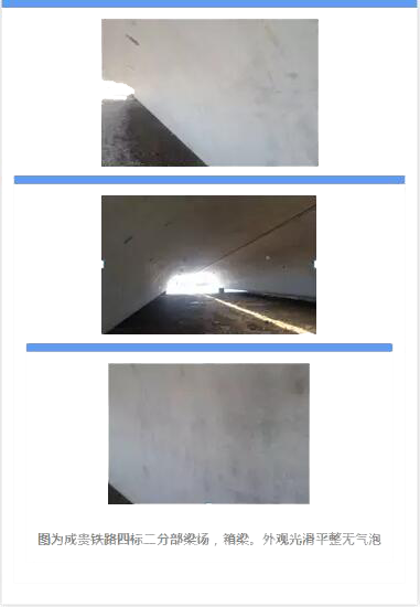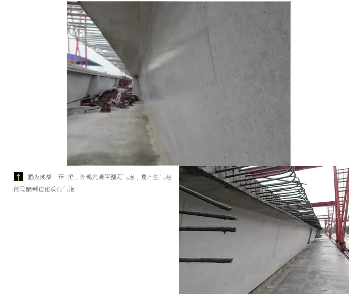 从小试件模拟、装桶成型至实际梁体建造,外部均光洁无气泡,满足清水混凝土要求