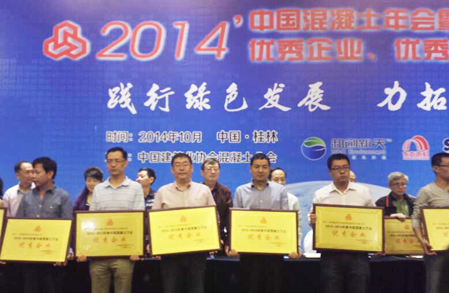 2014年中国混凝土年会暨表彰及交流大会于2014年10月14日~17日在广西省桂林市召开。大会以“转型升级”为主题,以报告、研讨、交流等形式,共同探讨和明晰当前产业环境下发展高性能混凝土的指导思想、主要目标和基本原则,引领行业通过科技进步、管理创新和各级协会的组织协调作用,优化高性能混凝土发展环境,实现混凝土行业绿色低碳发展。本次大会对中国建筑业协会混凝土分会2013~2014年度先进协会及协会工作先进个人予以表彰并颁发证书、奖牌,三瑞企业荣获中国混凝土行业优秀企业。获奖单位多数是混凝土及其制品的生产企业,仅有包括三瑞企业在内的两家混凝土外加剂企业获此殊荣。